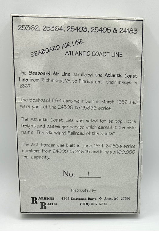 Raleigh Rails Micro-Trains N Scale Limited Edition Number "1" Seaboard Air Line Atlantic Coast 5 car Pack