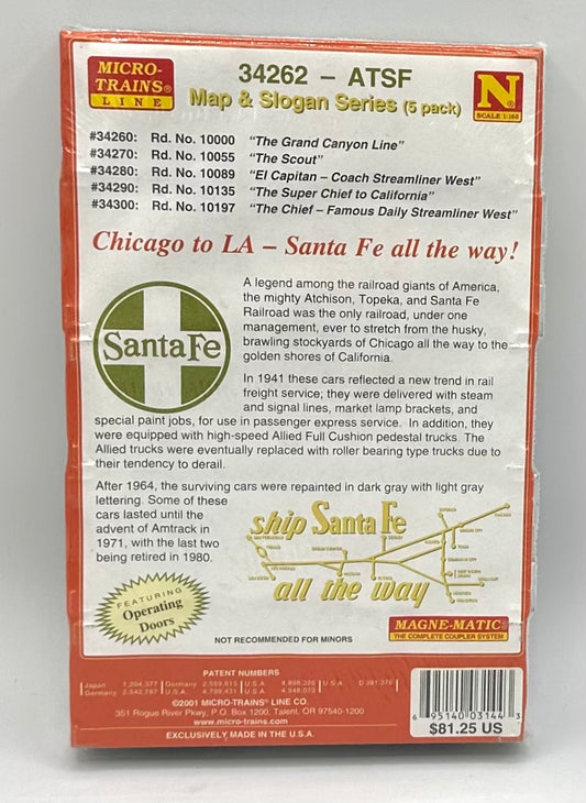 Micro-Trains N Scale Atchison, Topeka & Santa Fe, Slogan Series 5 car Pack