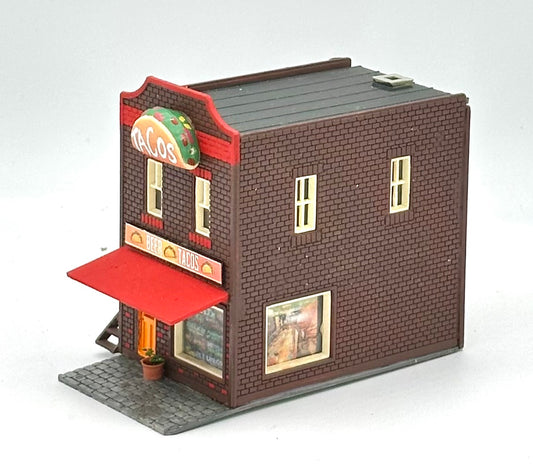 HO Scale 2-Story Brick Built "Beer & Tacos" Restaurant Fully Assembled.