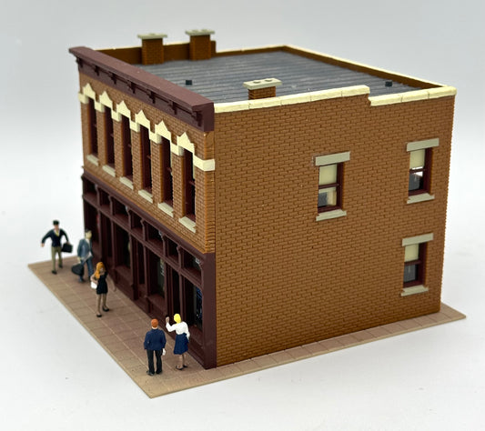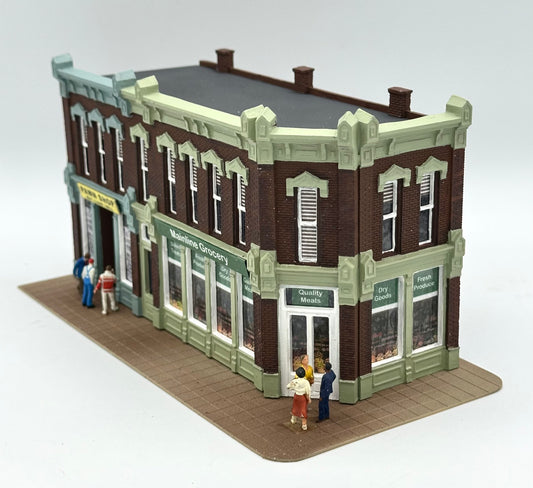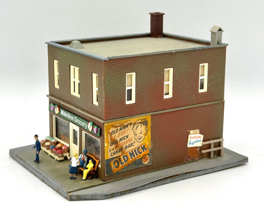 HO Scale 2-Story Brick Built "Mainline Grocery" Building Fully Assembled. Lighted