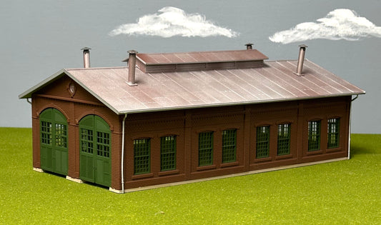 Walthers Cornerstone 933-3007 HO Scale 2-Stall Engine House Custom Painted/Weathered Fully Assembled LED Lighted