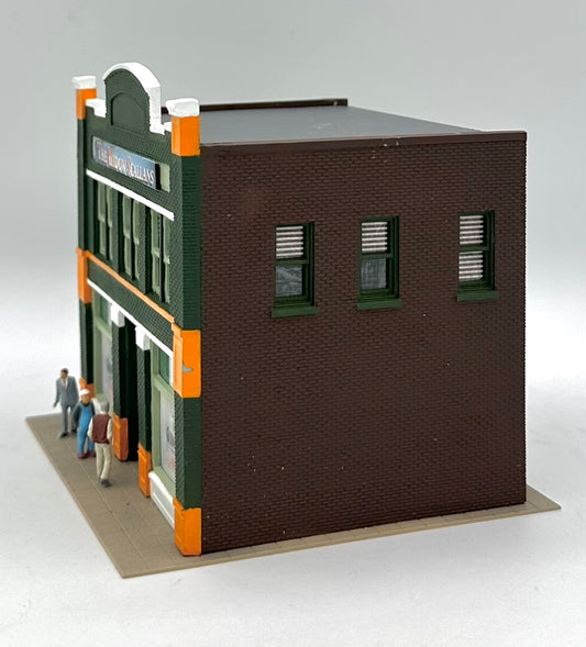 Woodland Scenics HO Scale 2-Story Corner Custom Painted "Callahan's" Irish Pub/Bar Fully Assembled. Lighted