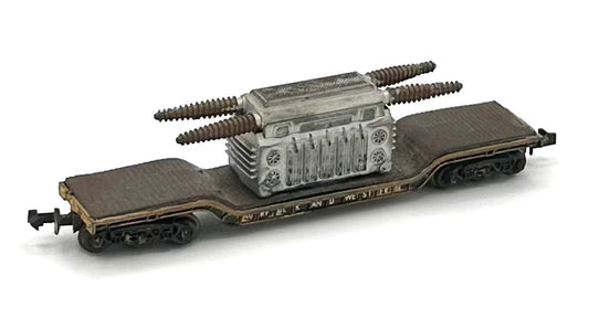 MiniTrix N Scale Norfolk & Western 6 Axle Depressed Center Flat Car With Generator Load