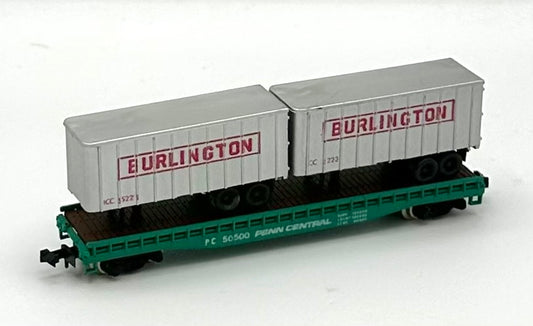 MiniTrix 3148 N Scale Penn Central Piggy Back Flatcar + 2 Trailer Loads