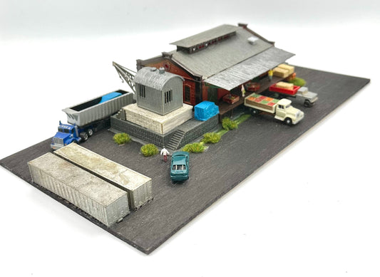 N Scale Model Power Custom Weathered Rail Side Industrial Warehouse and Yard Diorama