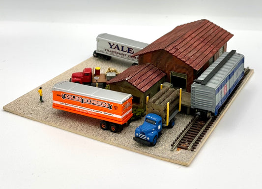 N Scale Weathered Custom Built Single Story Freight Depot Diorama