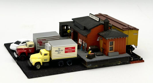 N Scale Custom Built/Painted "Country Freight Station", Buildings and Yard ,New Diorama.