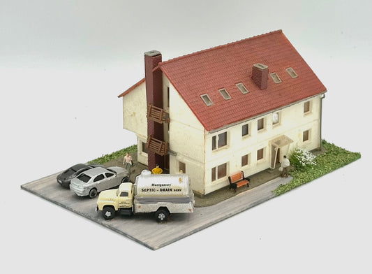 N Scale Modern Chalet Family House Custom Diorama Lighted
