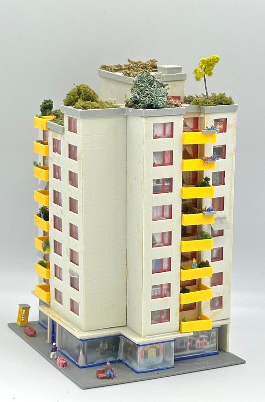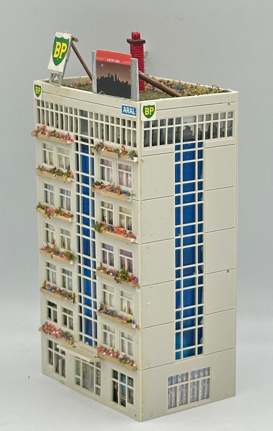 Kibri N Scale 9-Story Modern Apartment Building, Fully assembled.