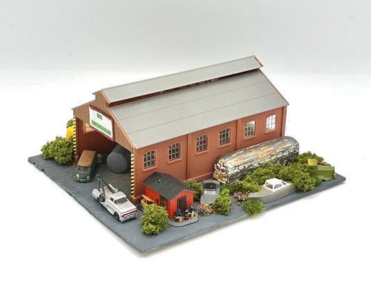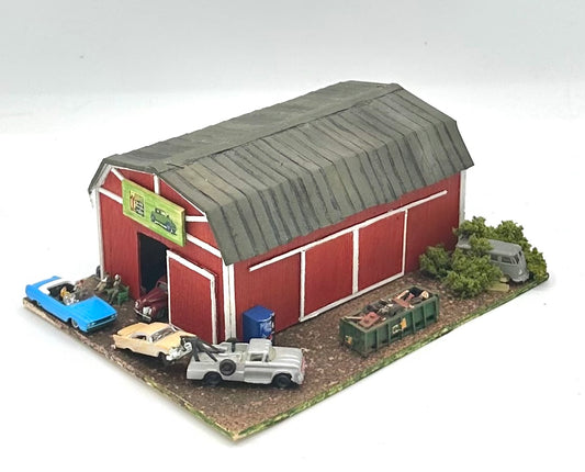 N Scale Weathered Custom Built & Painted Old Barn Vehicle Repair Shop Diorama