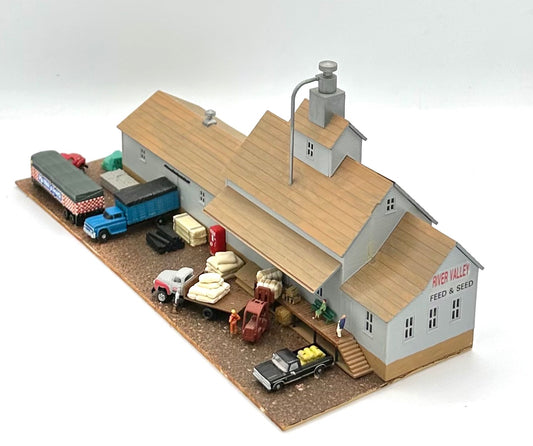 N Scale 2-Story Custom, Weathered "River Valley" Feed & Seed Building Diorama
