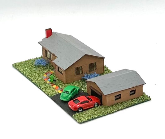 N Scale Weathered Custom Built Ranch Style House plus Garage Diorama