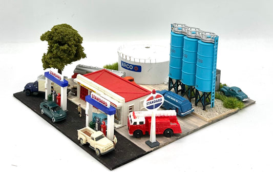 N Scale Weathered Custom Built Standard Gas Station and Tanker Supply Depot Diorama