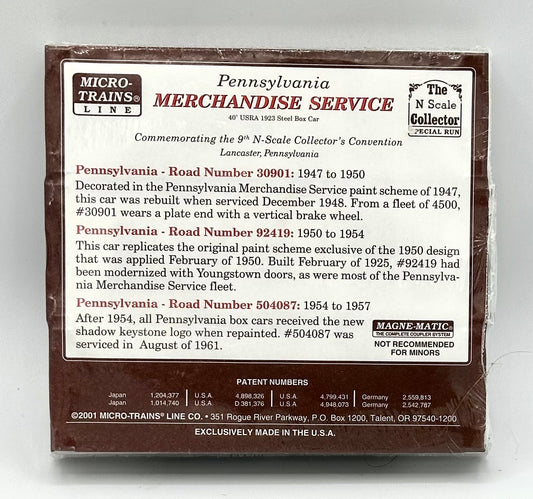 Micro Trains MTL N Scale Special RUN Pennsylvania RailRoad Merchandise Service 3 Car Pack Factory Sealed