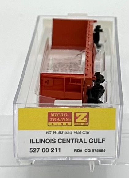 Micro Trains MTL Z Scale 527 00 211 Illinois Central Gulf 60' Bulkhead Flat Car