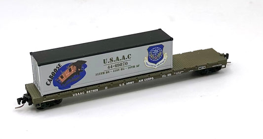 Micro Trains MTL Z Scale 524 00 102 Caboose U.S.A.A.C 60' Flatcar with Container Load