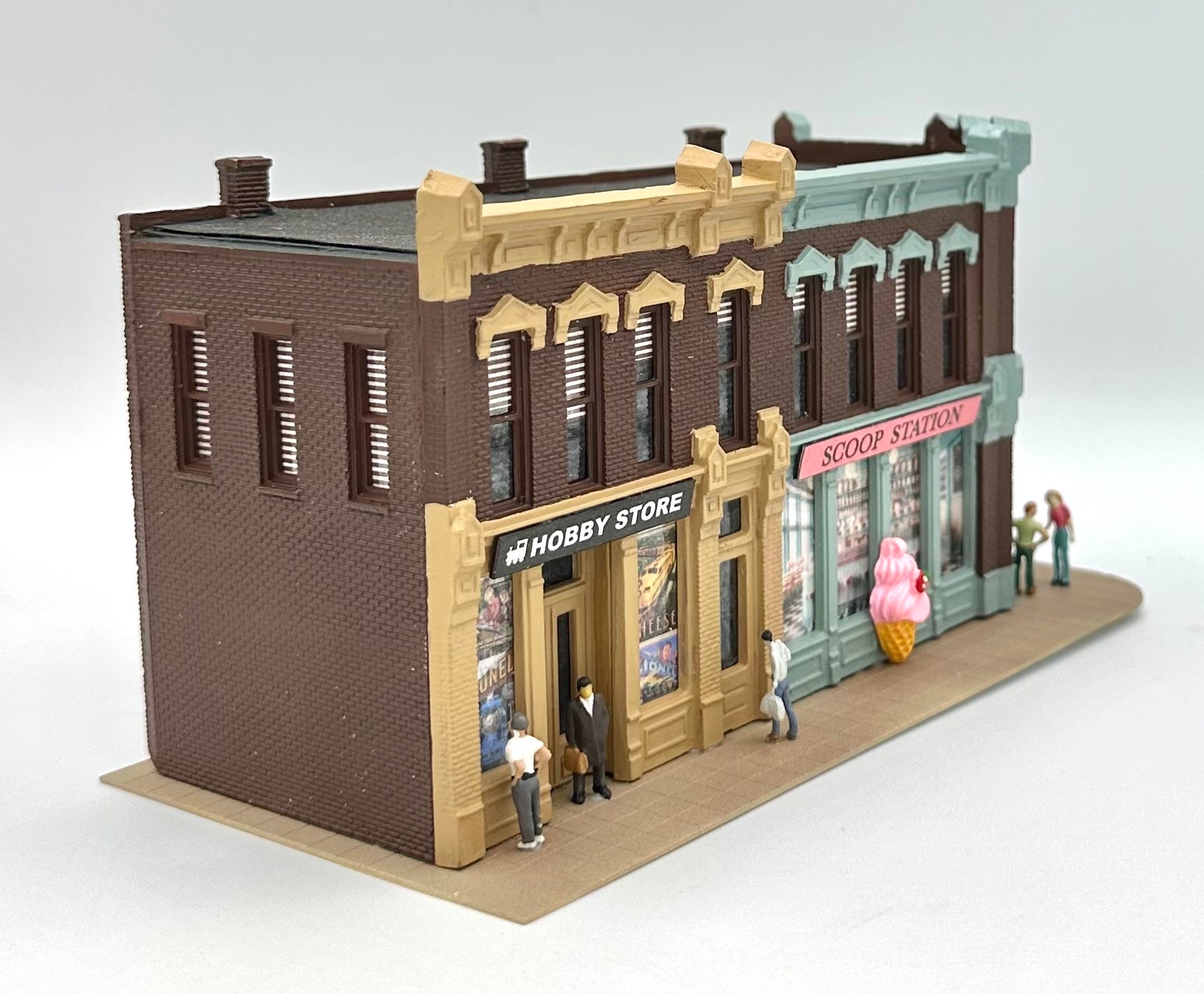 DPM 12100 HO Scale Fully Assembled Seymour Block " Hobby Store/Scoop Station" Lighted