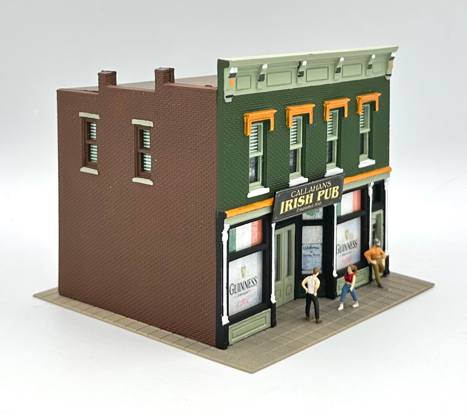 DPM HO Scale 2-Story Custom Painted "Callahan's" Irish Pub/Bar Fully Assembled. Lighted