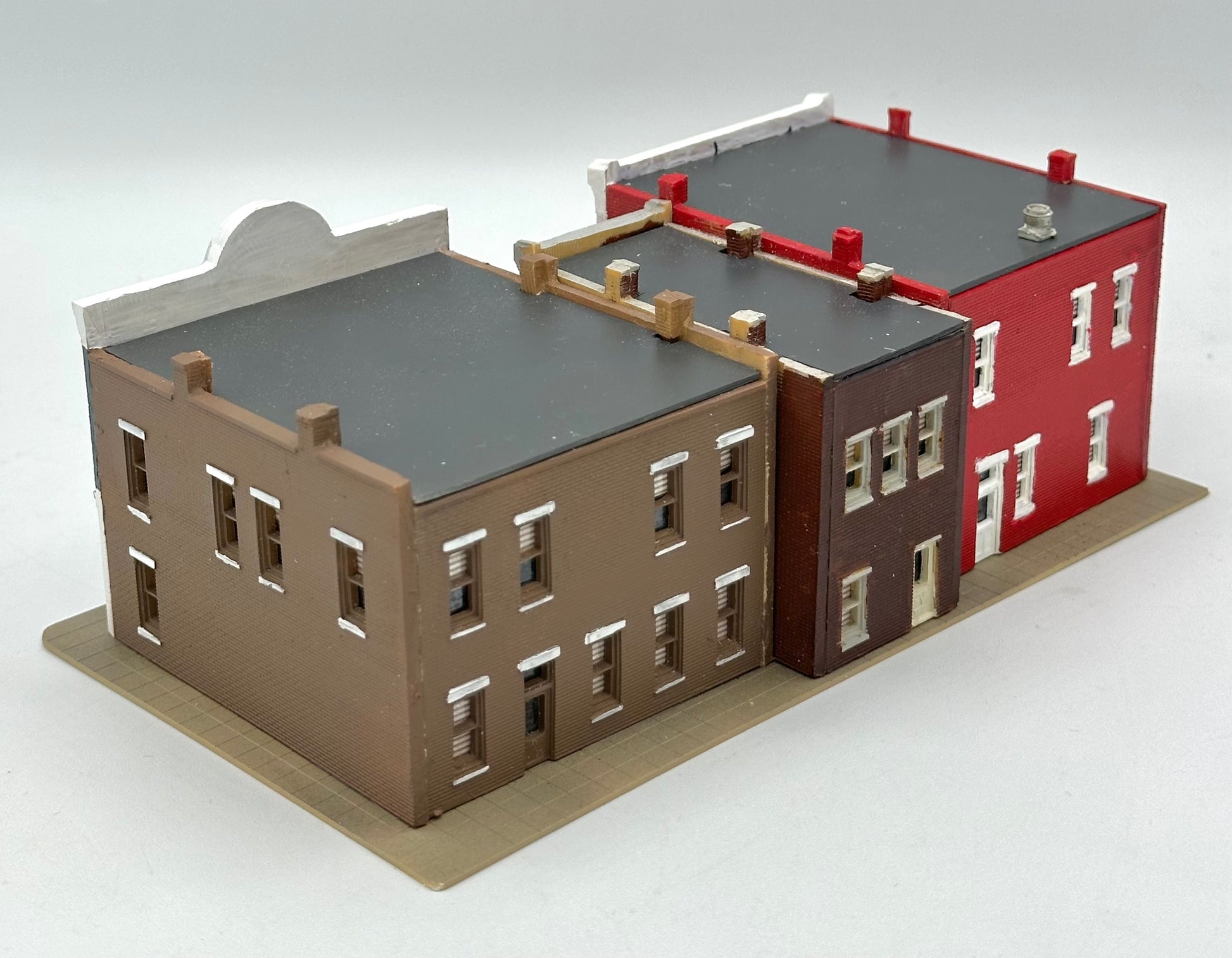 DPM N Scale, Row of 3 Shops individually LED lighted, Custom-painted Street Figures