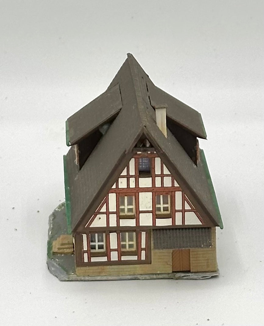 Kibri Z Scale Timber Framed 3-Story Chalet Style Weathered House Fully Assembled Lighted