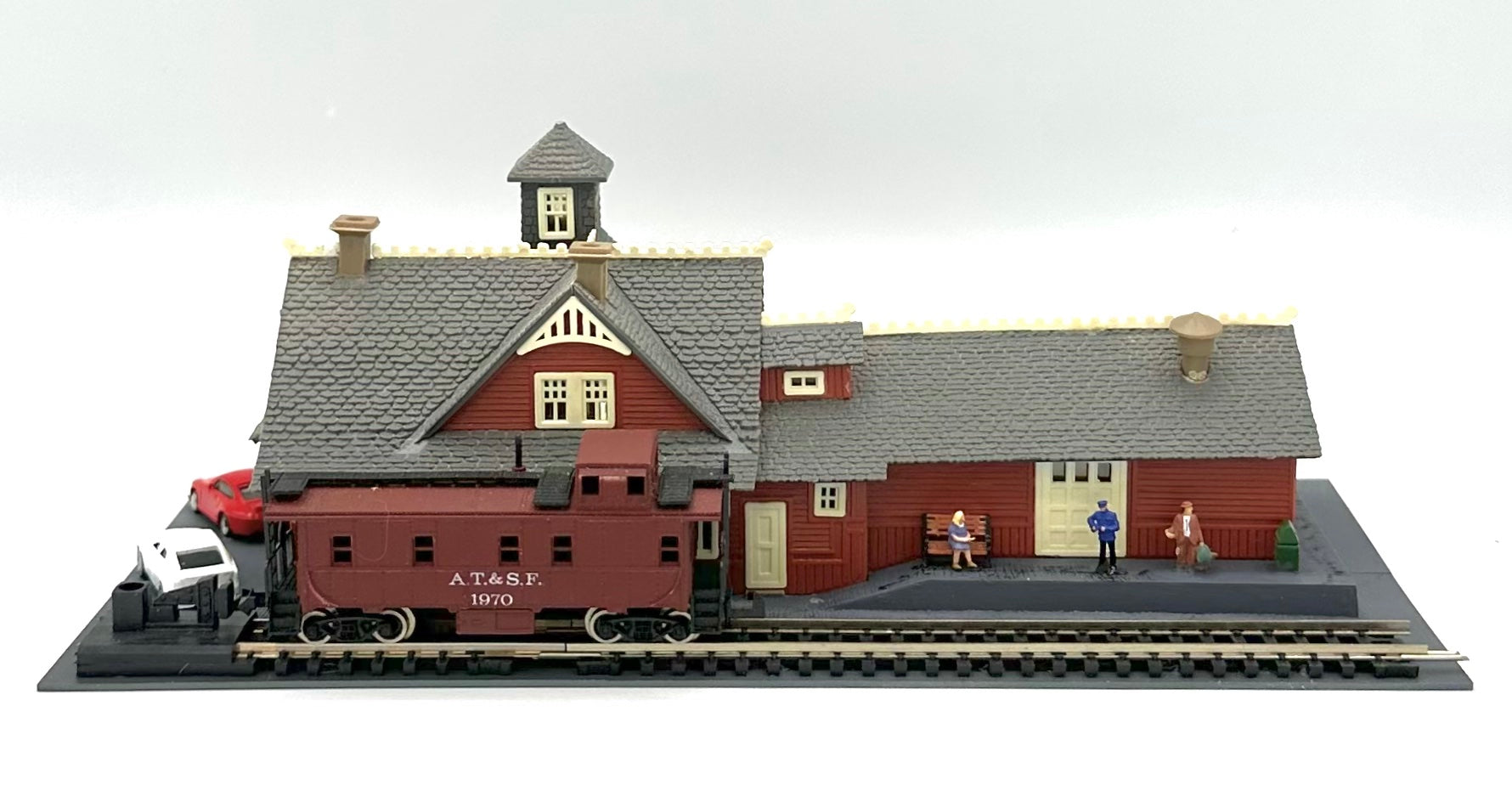 2 Cars, 1 AT&SF Caboose, Multiple Figures