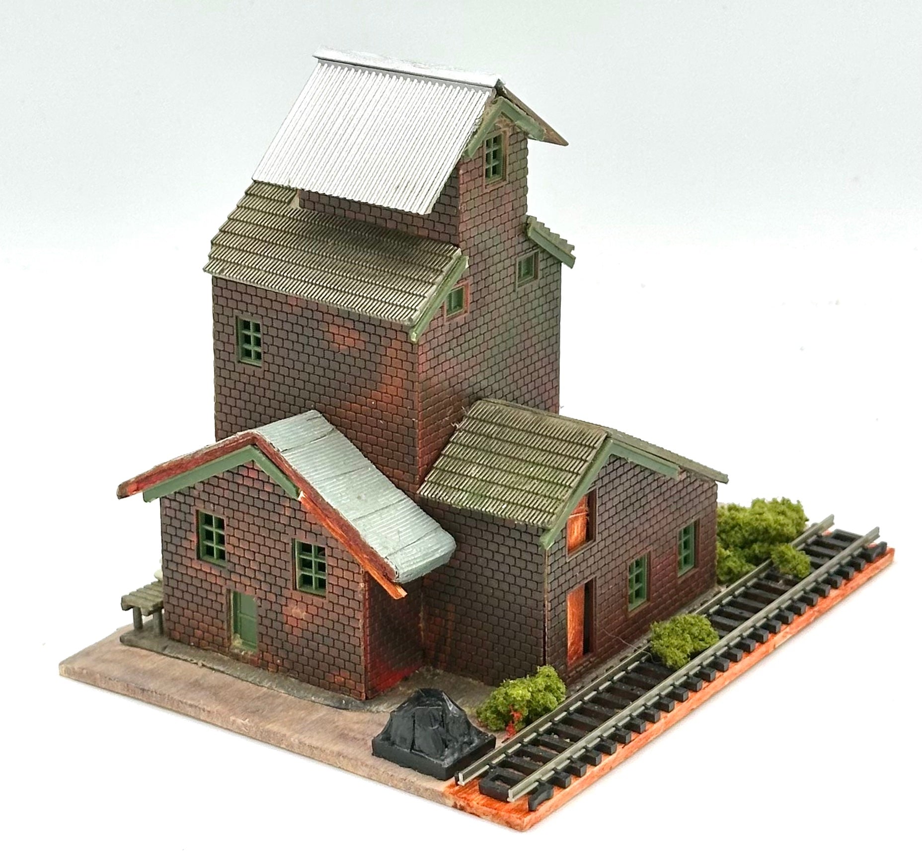 N Scale Custom Built/Painted Weathered Trackside Grain ElevatorDiorama.