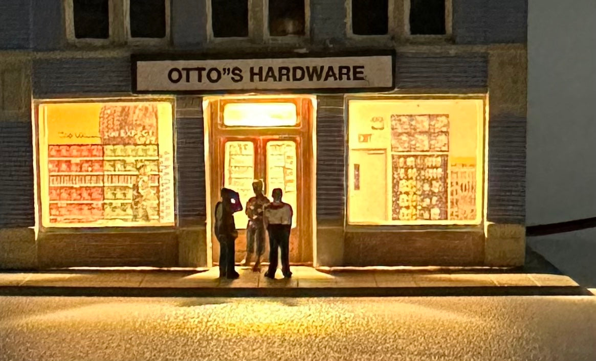 Woodland Scenics N Scale Custom Painted/Weathered "OTTO'S" Hardware Lighted Shop Interior